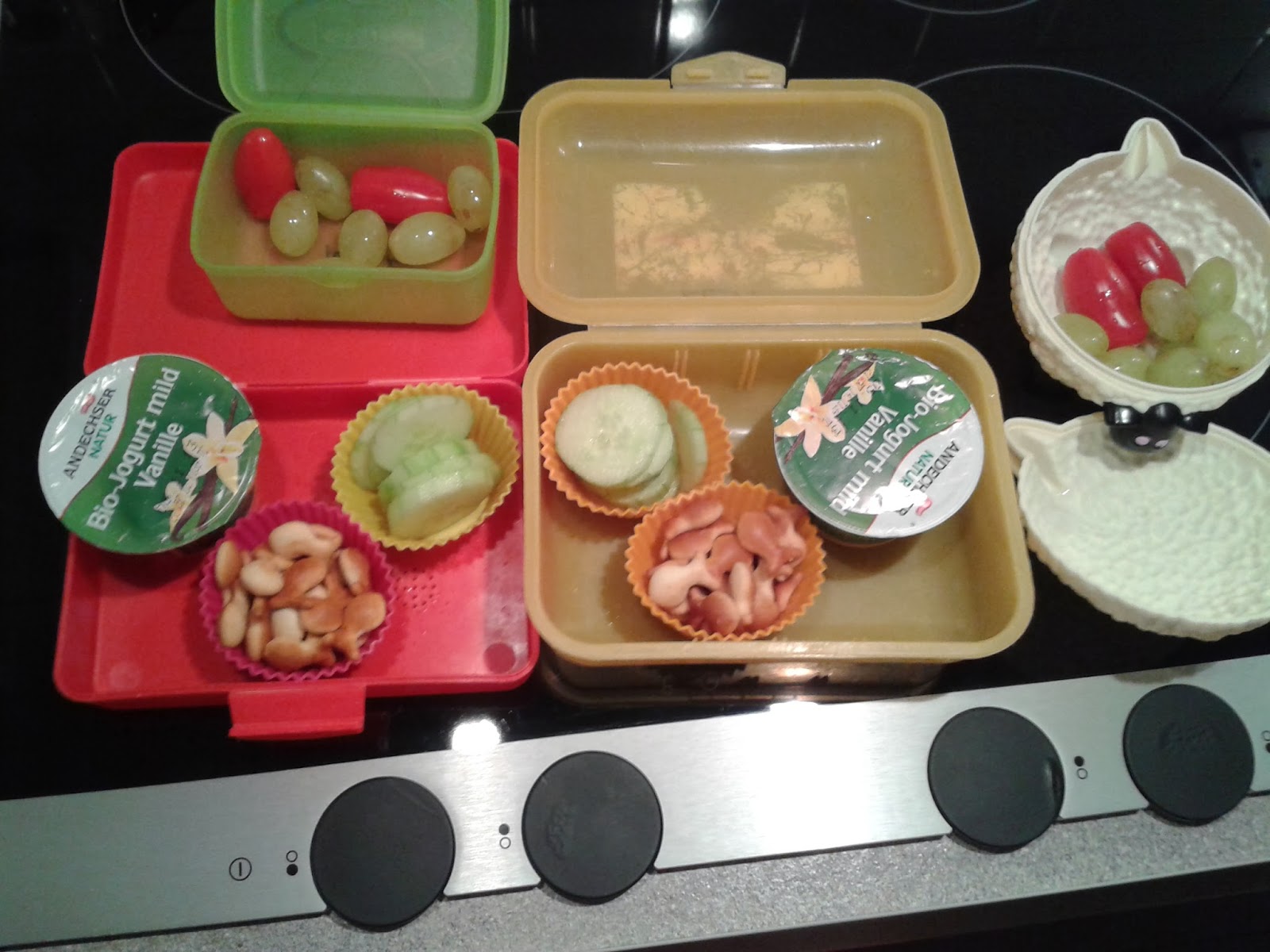 Was aber in der Regel immer aus ist am Freitag ist das Zubehör für die tägliche Befüllung der Brotzeitboxen der Kids.
